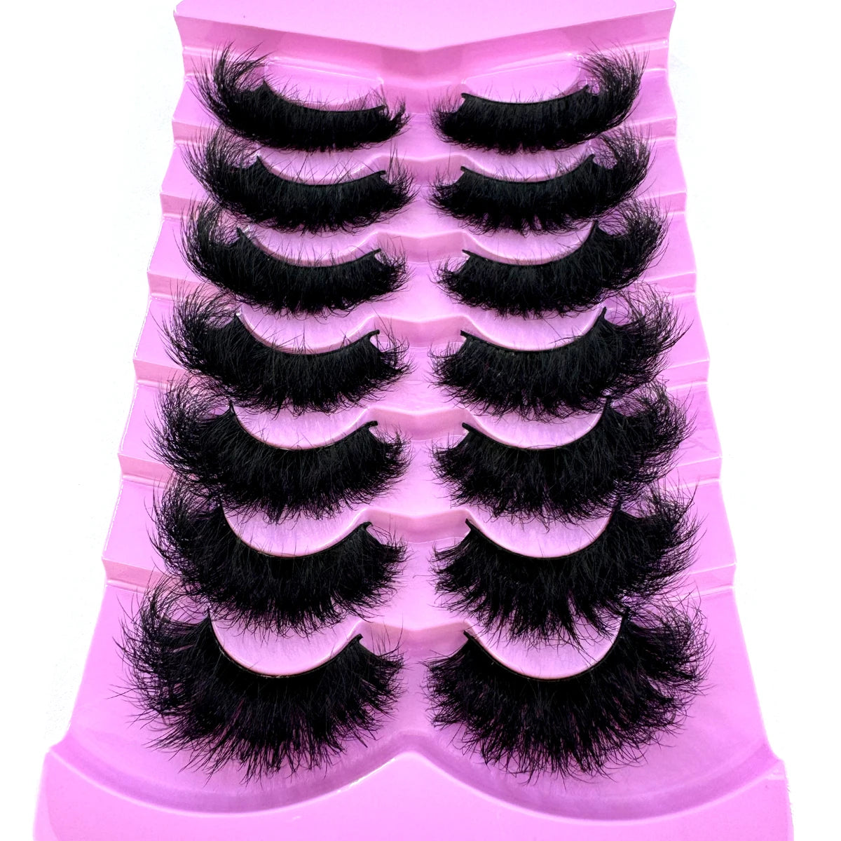 7 Pairs 3D Mink Lashes (15–25mm) – Bulk Faux Mink Eyelashes with Custom Box, Wispy Natural Look, Short Strip Lashes